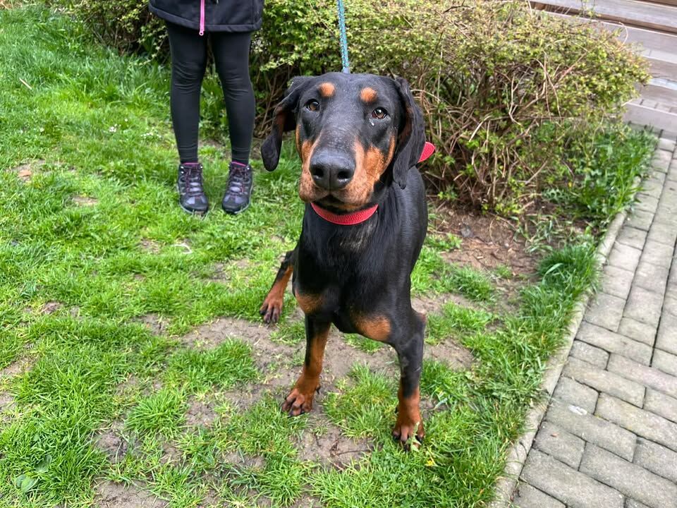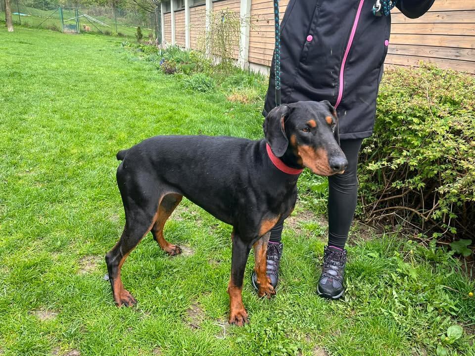Trinity je kříženec dobrmana, má 3 roky, kastrovaná