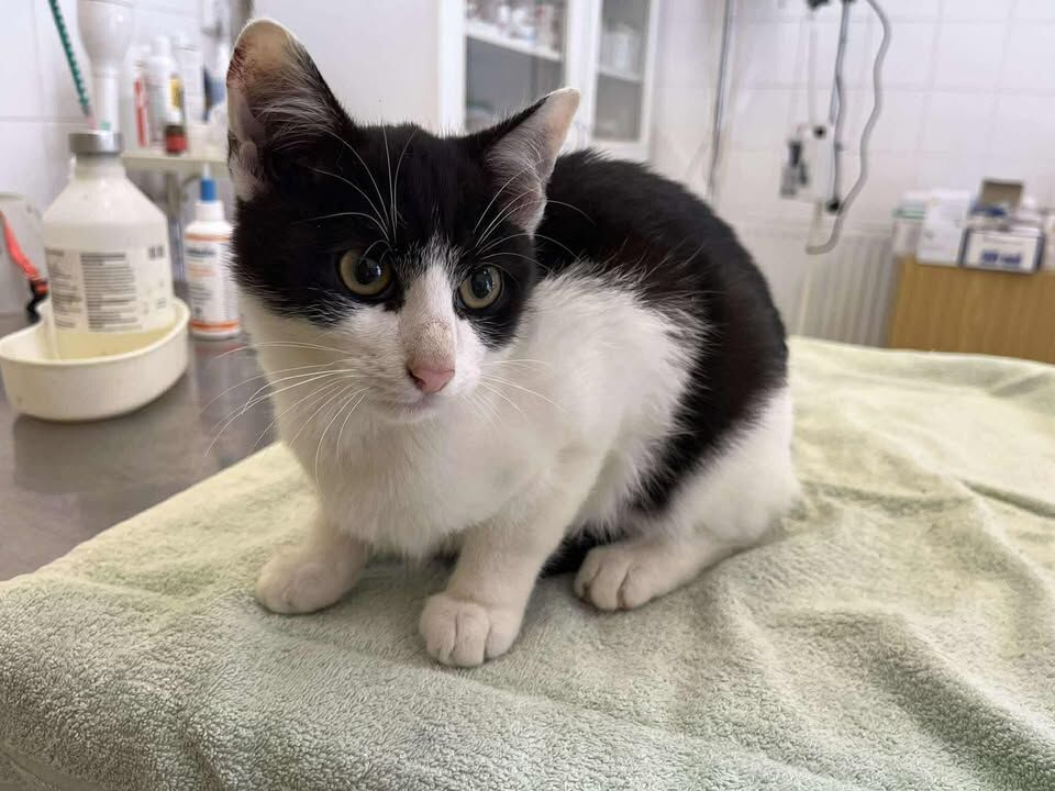 kocourek 4 měsíce, černobílý, 1x očkovaný, přítulný, odběr možný po 17.10., rezervace kocourka možná