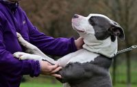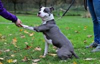 Charlie je u nás krátce, zatím se tedy vzájemně poznáváme , budujeme pozitivní vazbu a pomalu se učíme. Charlie je střela, která po vypuštění z kotce pochopitelně neví kam dřív s nahromaděnou energií, skáče, přetahuje se o vodítko, překusuje, motá se a blázní….. V současné chvíli ale už vidíme pomaličku pokroky, chápe, že vodítko není hračka, že se na něm chodí a netahá. Na náhubek zatím reaguje panicky, tam to bude ještě chvíli trvat. Je vnímavý a dokáže se naladit na vaši notu. Zatím jej ještě do nového domova nevypustíme, jednak je krátce po kastraci a také jej ještě musíme lépe ochodit, ale budeme rádi, když se případný nový majitel připojí a bude za Charliem nějakou dobu před adopcí docházet, venčit ho, učit ho a hlavně nám tak dá najevo, že to myslí s Charliem vážně a zvládne ho. V současné chvíli ještě kdykoliv potřebujeme s Charliem manipulovat stran veterinární péče nebo s ním děláme něco, co nezná a začne se bát, tak dokáže naplno použít svoji sílu a brání se….. Je to pochopitelné, nic ho nikdo neučil, ale uvádíme to pro ty, kteří si myslí, že je to pohodička….. Věřte, někdy to má do pohodičky daleko!